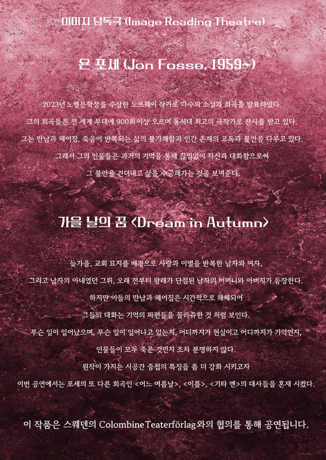 | 이미지리딩씨어터 [가을날의 꿈] 2025. 2. 15. 15:00 |